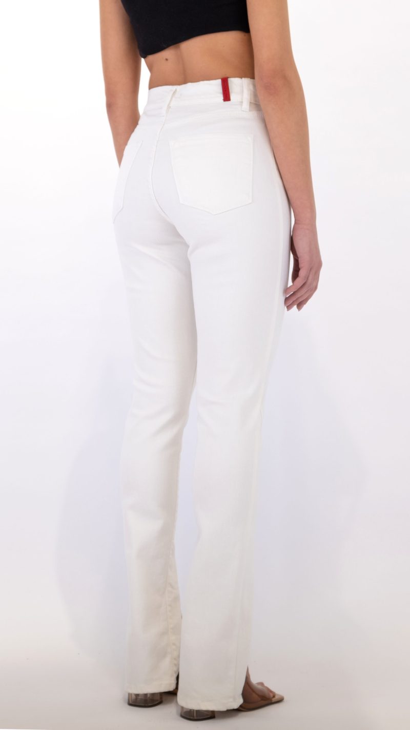 Designed in a skinny fit with elastic cotton fabric and its beloved split at the end.