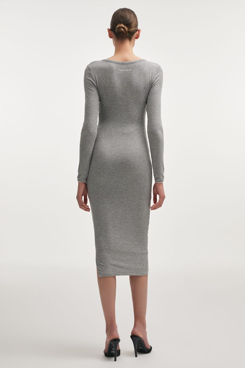 Anasa Ribbed Dress by Nadia Rapti, fluid silhouette, understated modern femininity.