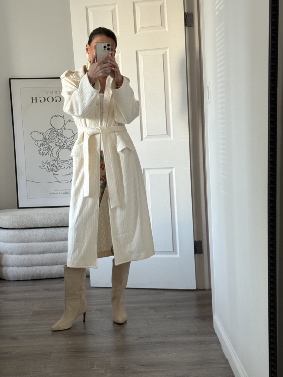 To enhance the flattering shape, simply cinch the coat at the waist with the self-tie belt, creating a beautiful hourglass figure.