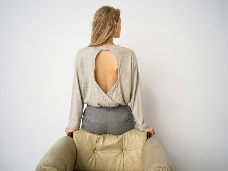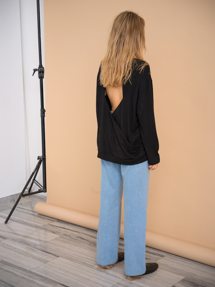 The opening at the back add a feminine touch to this slightly loose all-day sweater.