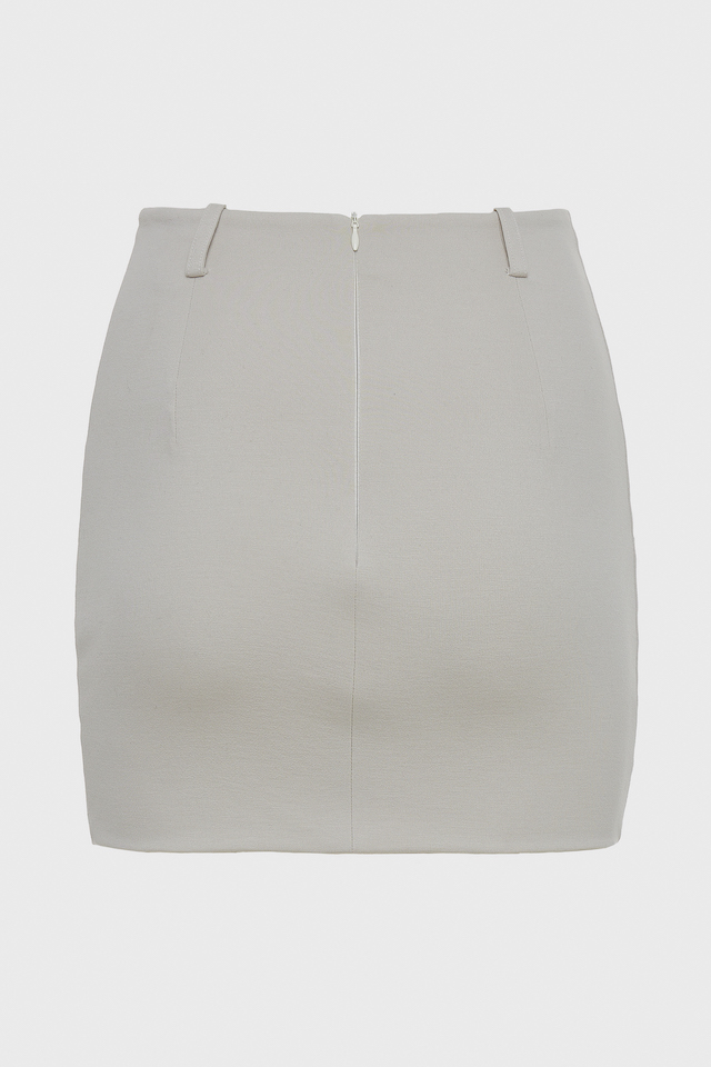 A structured mini pencil skirt in soft jersey punto fabric. Cut to a refined, body-skimming silhouette, it offers both comfort and precision. Minimal detailing and clean lines highlight the purity of its form. A versatile piece that transitions effortlessly from office to evening, embodying quiet strength and timeless polish.