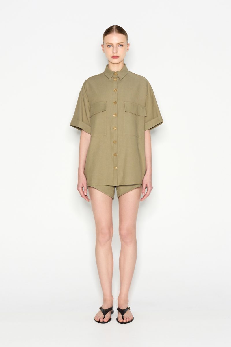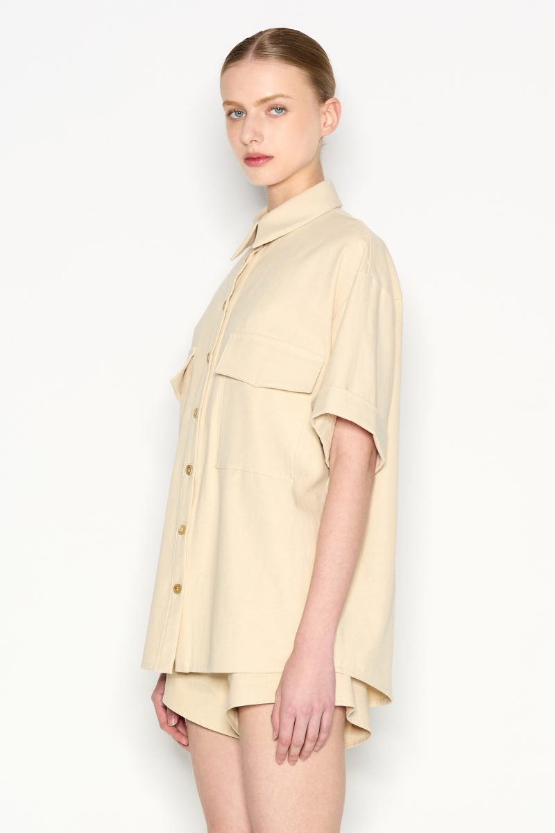 Desert short sleeve shirt featuring a relaxed fit, with a classic button-down front, and two statement chest pockets.`