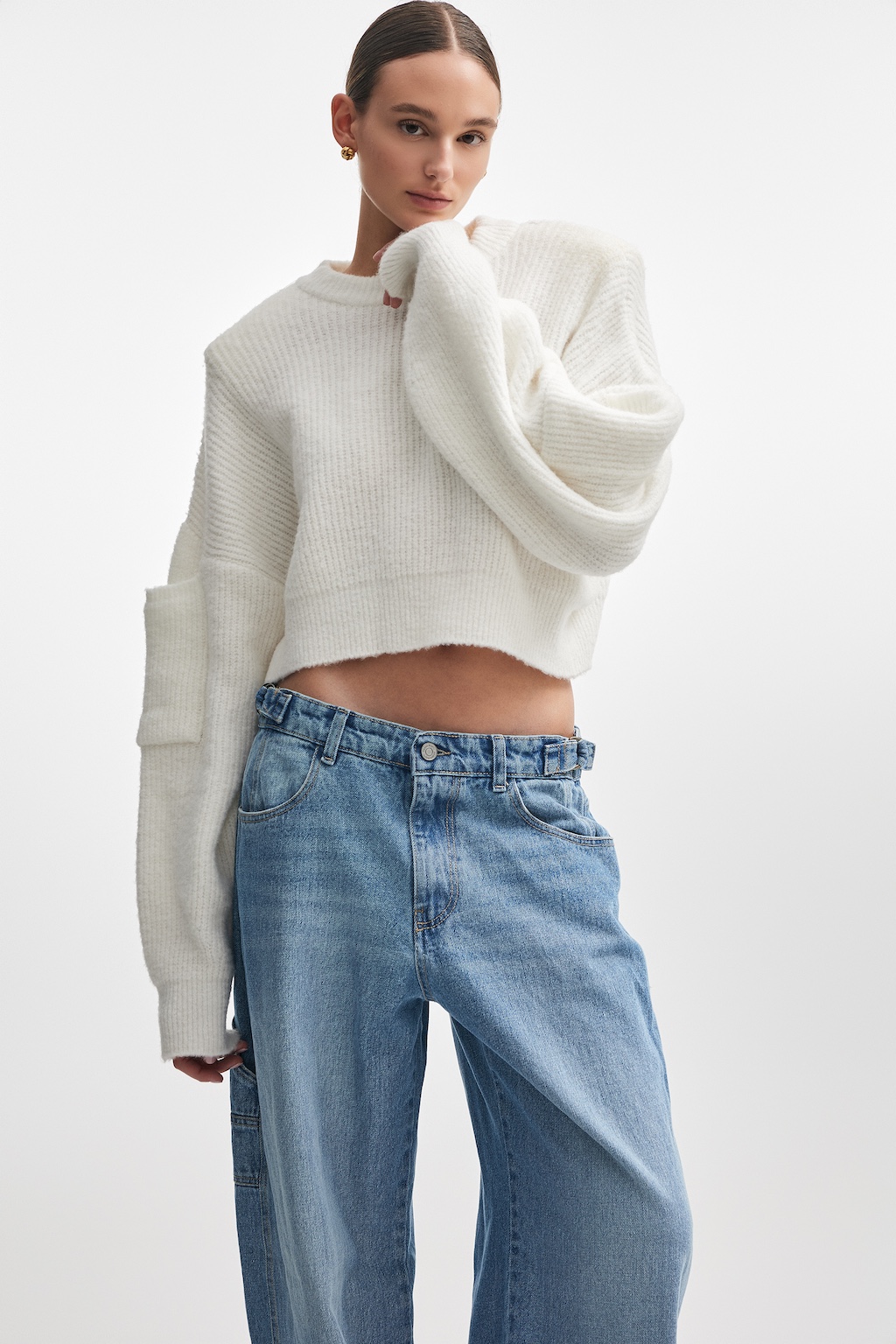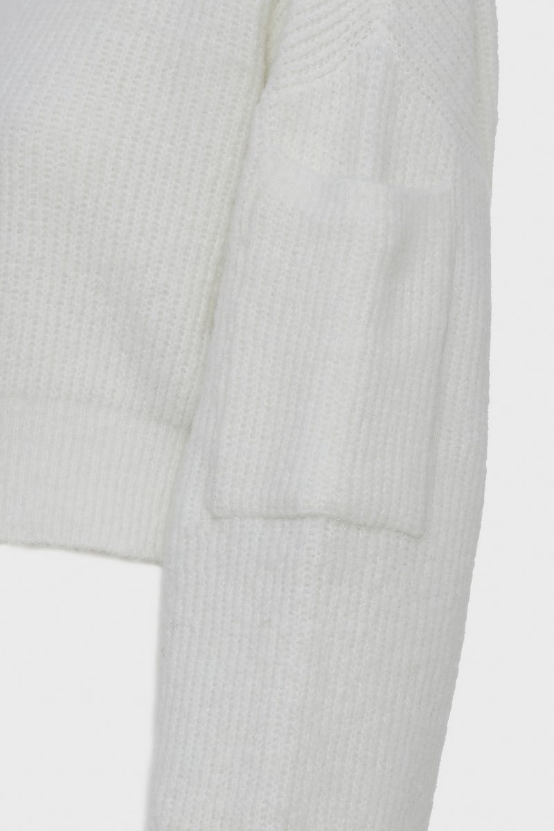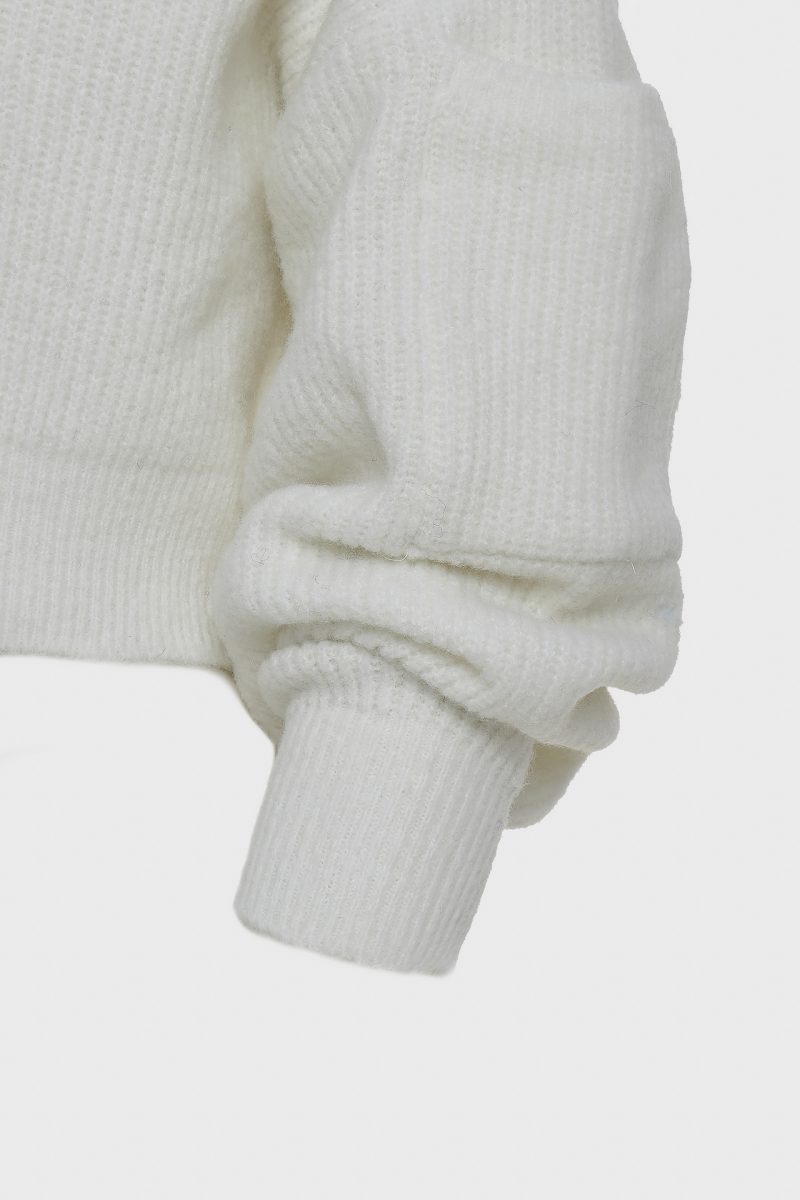 A refined cropped knit with a clean crew neckline. Sculptural sleeves add quiet volume, creating a modern silhouette with ease and comfort.
