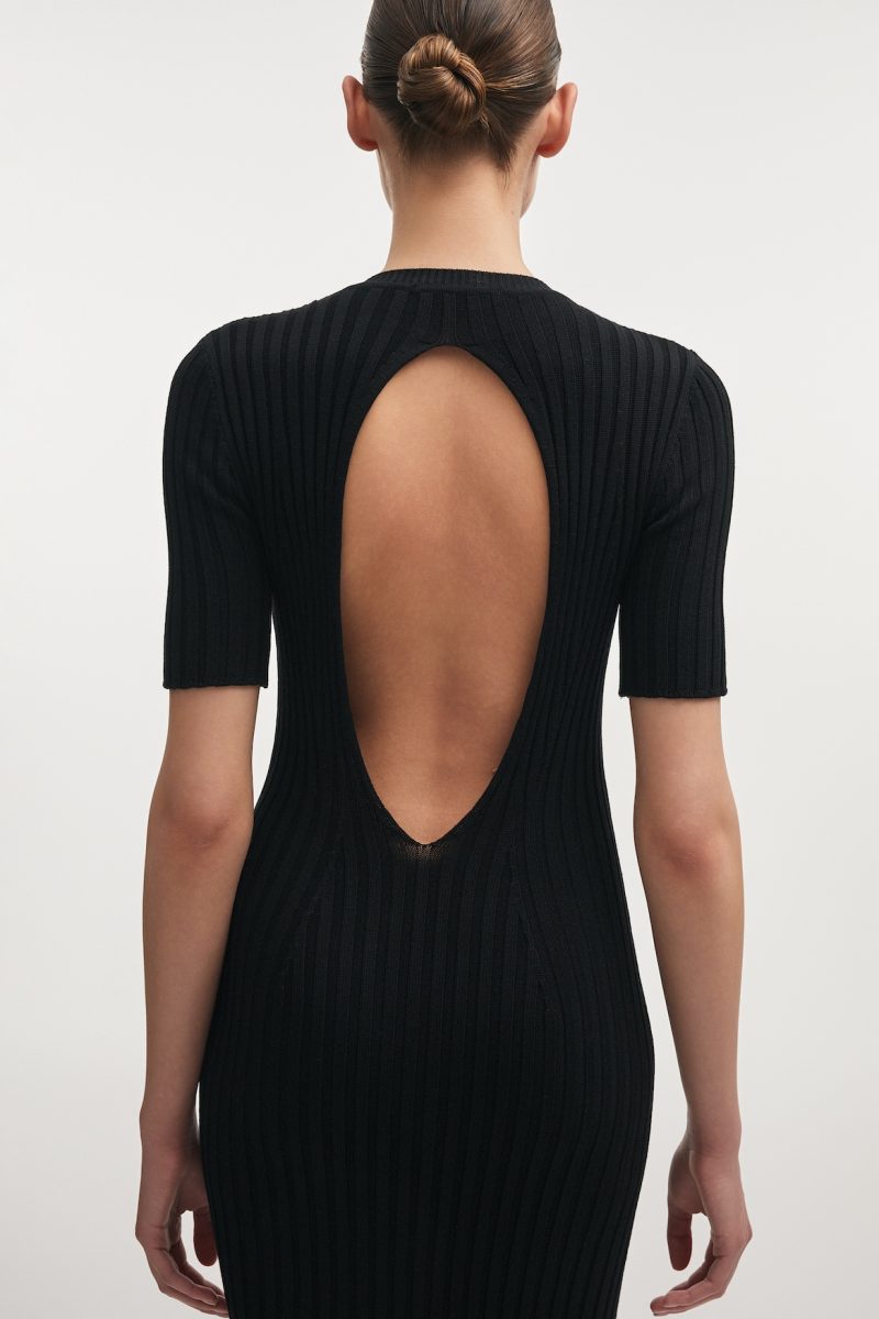 Femme Knitted Maxi Dress by Nadia Rapti, sculpted lines with an open-back statement.