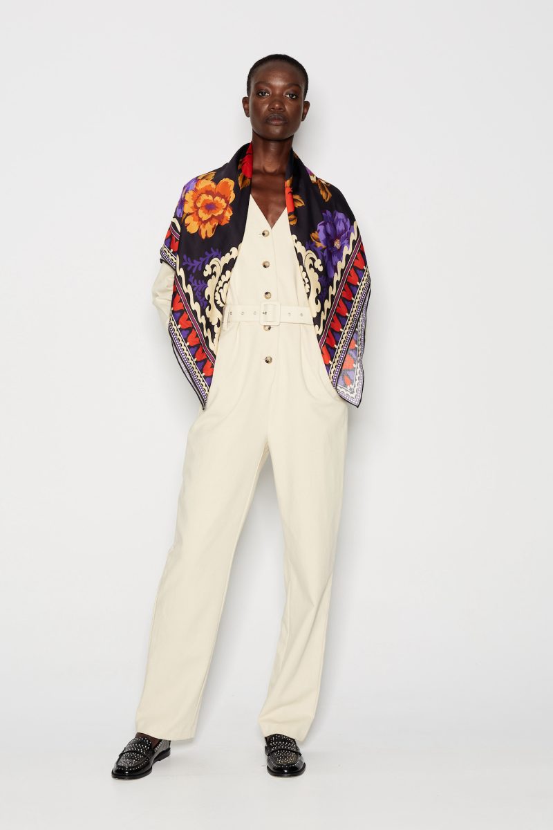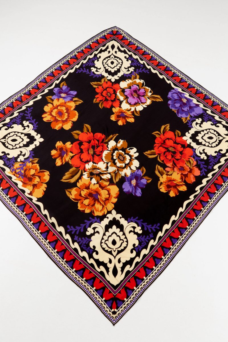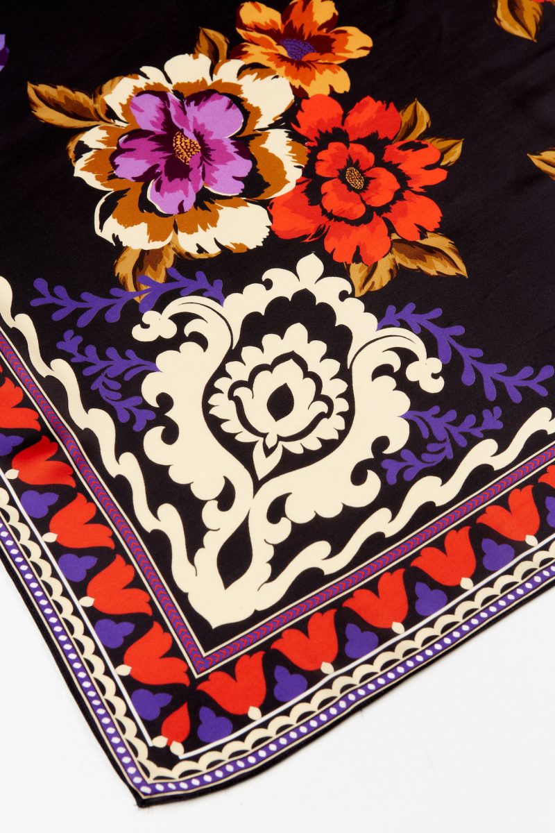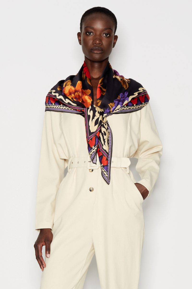 The Floral Fiction Scarf is cut from silk-touch cotton and it is patterned in a colorfu & impressivel floral motif.