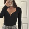 Black faux leather bustier bodysuit with a deep V neckline — bold, edgy, and unforgettable.