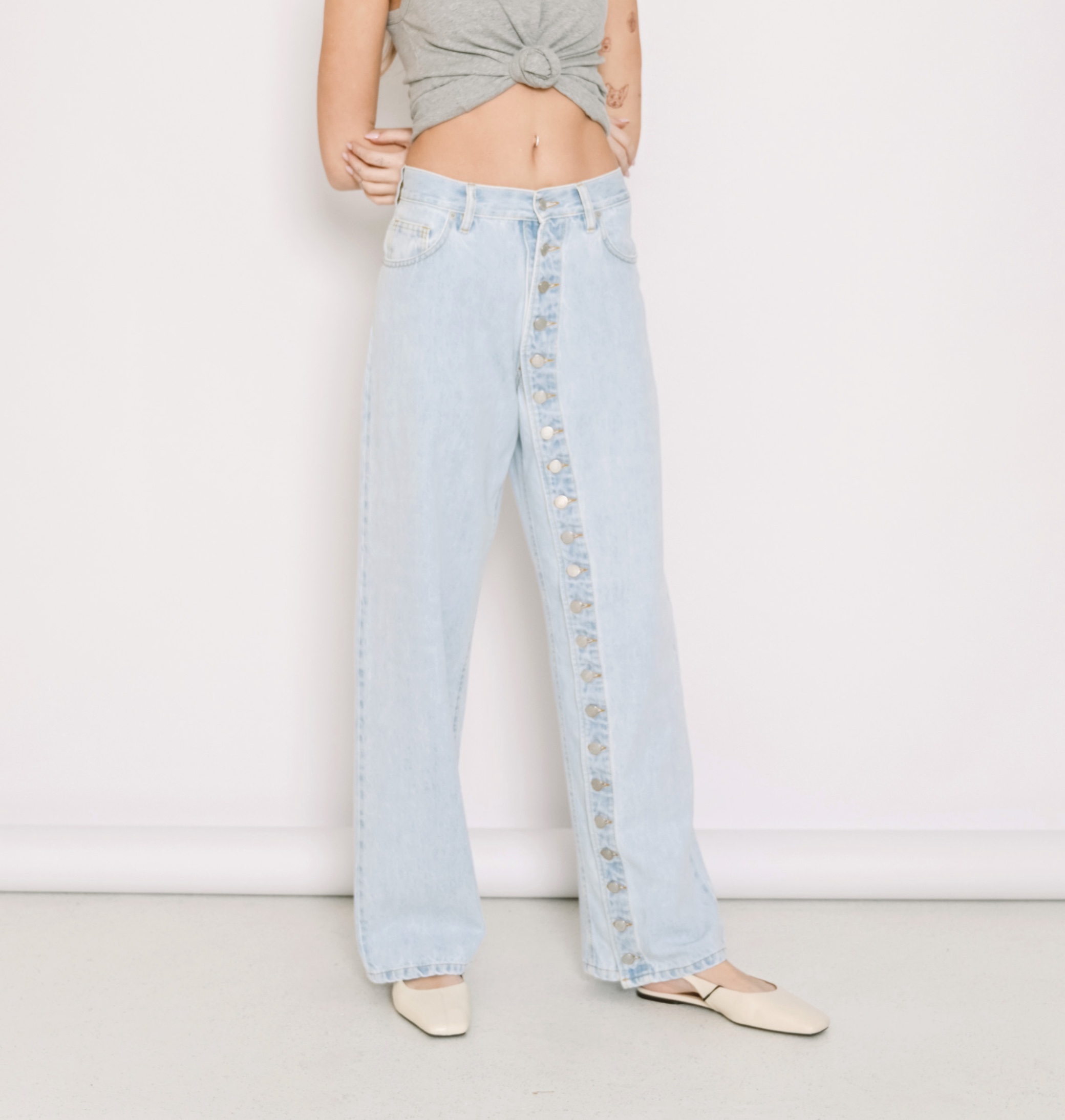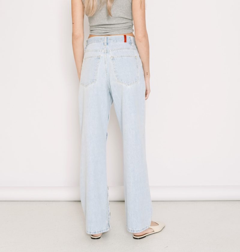 The loose wide-leg fit offers movement and ease, complemented by structured rigid cotton that holds its shape.