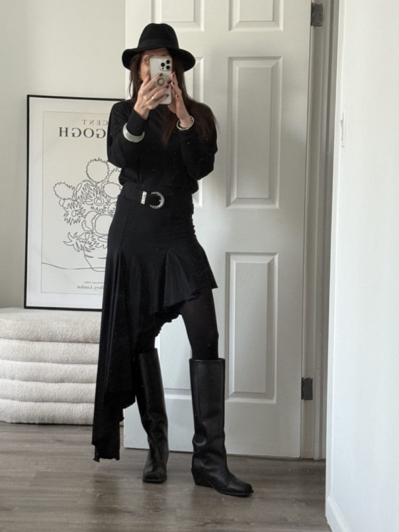 The perfect assymetric black skirt and the biggest SS25 Trends is the Flamenco Skirt.